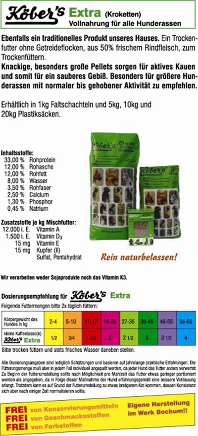 Köber's Extra, aus 50 % frischem Rindfleisch zum Trockenfüttern, für größere Hunderasse mit normaler bis gehobener Aktivität 10 kg