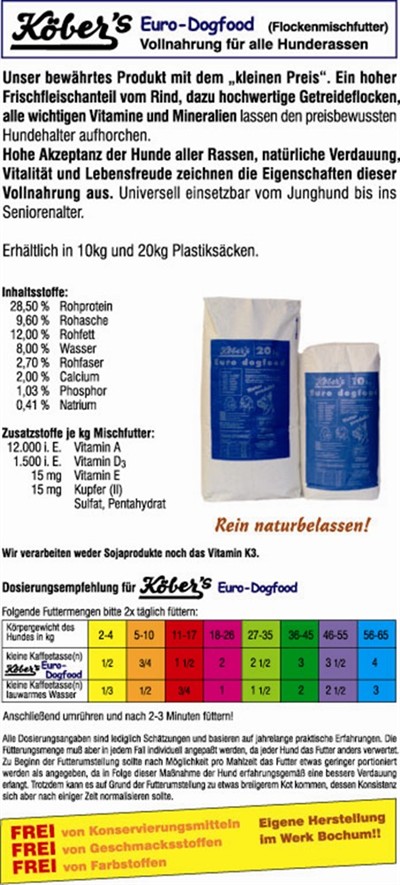 Köber's Euro Dogfood, universell einsetzbar vom Junghund bis ins Seniorenalter, 20 kg