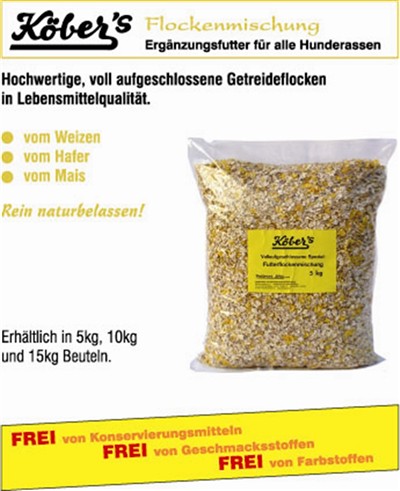 Köber's Flocken gemischt, Ergänzungsfutter für alle Hunderassen, 15 kg