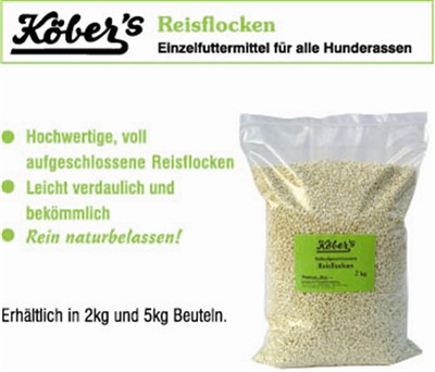 Köber's Reisflocken, Einzelfuttermittel für alle Hunderassen, 2 kg