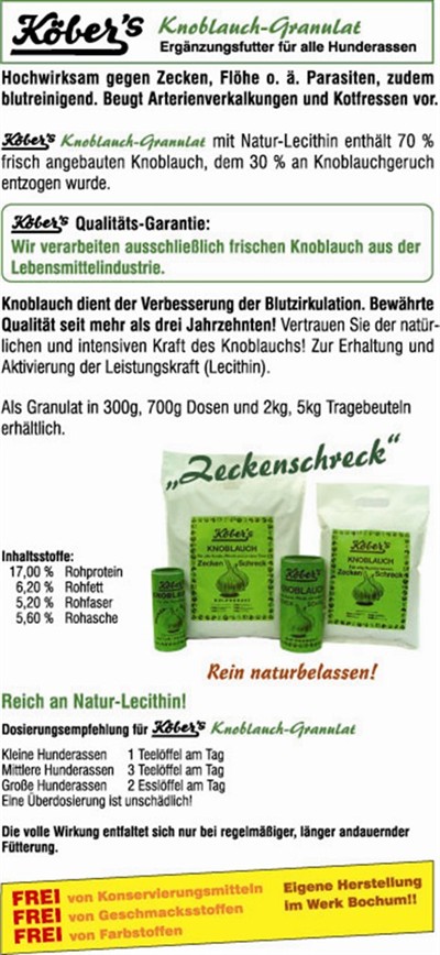 Köber's Knoblauch-Granulat, blutreinigend, hochwirksam gegen Zecken und Flöhe, 2 kg